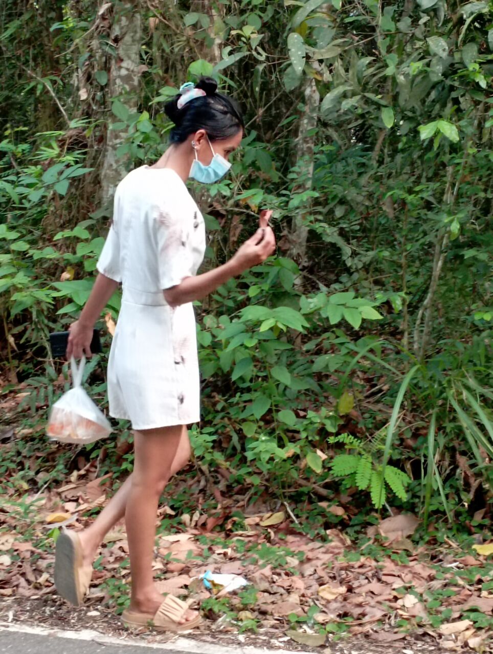 妻が帰りに道端の草を探し始めました。