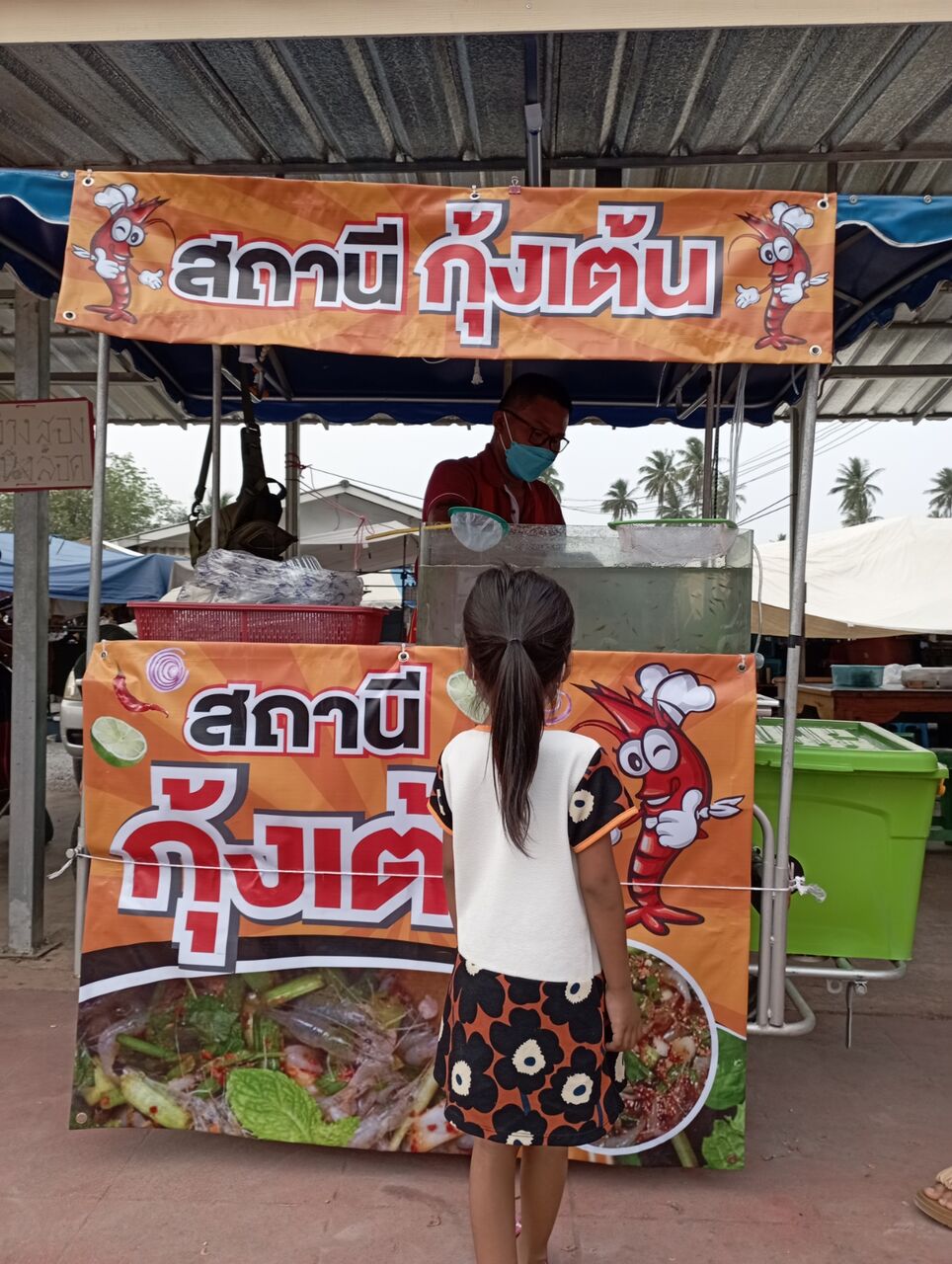 市場にきたら海老のおどり食いをみつけました。
