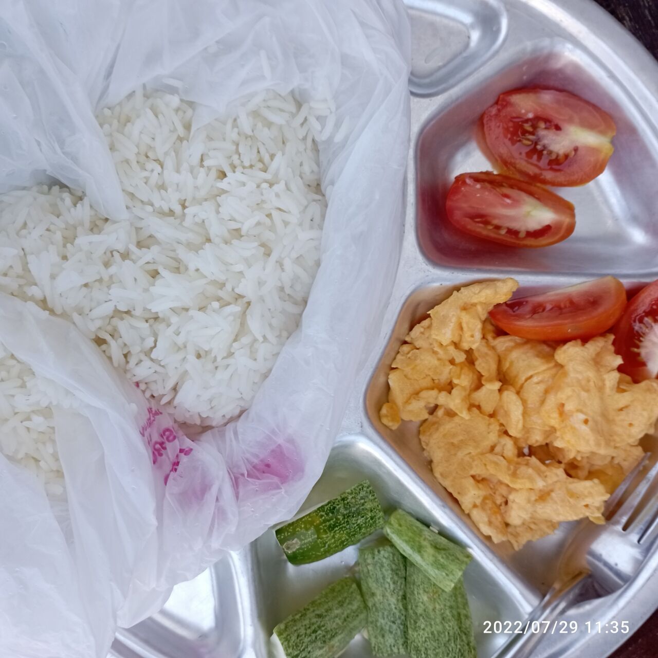 ビニール袋で米を炊く
