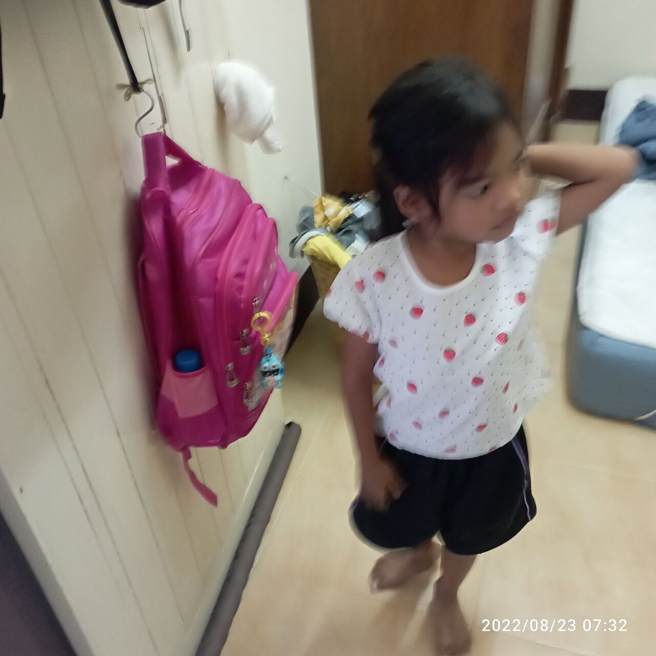 娘は学校にいく準備ができたと思ったら、泣き出しました。