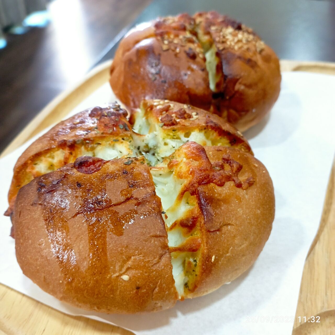 แล้วสั่งขนมปังที่ใส่ชีสแบบนี้ด้วย