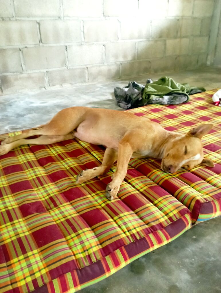自宅の床に置いて上げると尻尾をふっていつもの表情を見せてくれた。